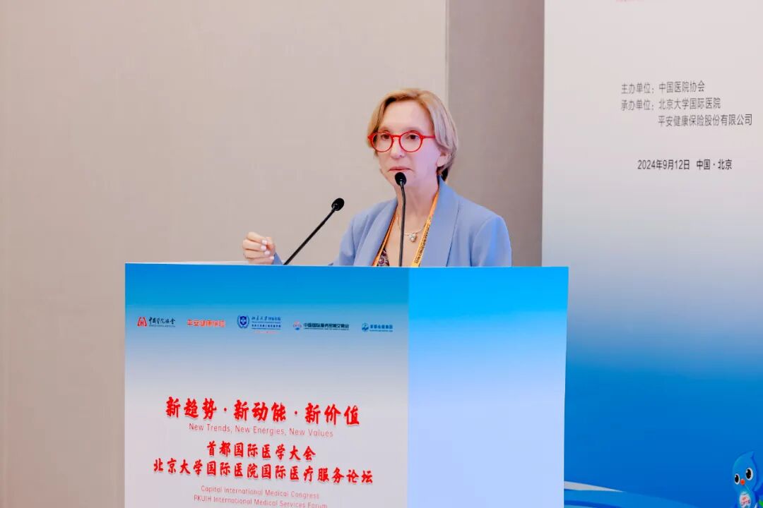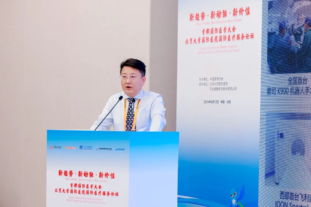 北京市卫生健康委员会二级巡视员郑晋普致辞表示,北京作为全国卫生健康资源高地,正积极响应国家政策,深化服务业开放,特别是在医疗领域,通过完善外资投资医院政策、推进国际医疗服务建设等措施,已形成以公立医院国际部和优质社会办医疗机构为主体的格局。北大国际医院作为首批试点单位,以其优越条件、专家资源和国际平台,正引领国际医疗服务创新。他表示,期待与各界共谋发展,推动国际医疗服务合作与创新,为提升全球医疗服务水平贡献力量。国家卫健委国际交流与合作中心快车救援外联部副部长马冉作《国家卫健委国际交流与合作中心的国际医疗实践分享》主题演讲,表示国家卫健委国际交流与合作中心快车救援外联部构建了全国紧急救援网络,积极参与国际医学救援,特别是在“一带一路”倡议下,加强海外中国公民健康保障。近年来,该部认证海外医疗资源,建立跨部门协作机制,提升救援效率,并连续举办医学救援大会,推动国际紧急医学救援事业发展。未来,将继续深化国际合作,提升医疗协助效率,推动国际医学救援高质量发展,为全球卫生安全治理贡献力量。