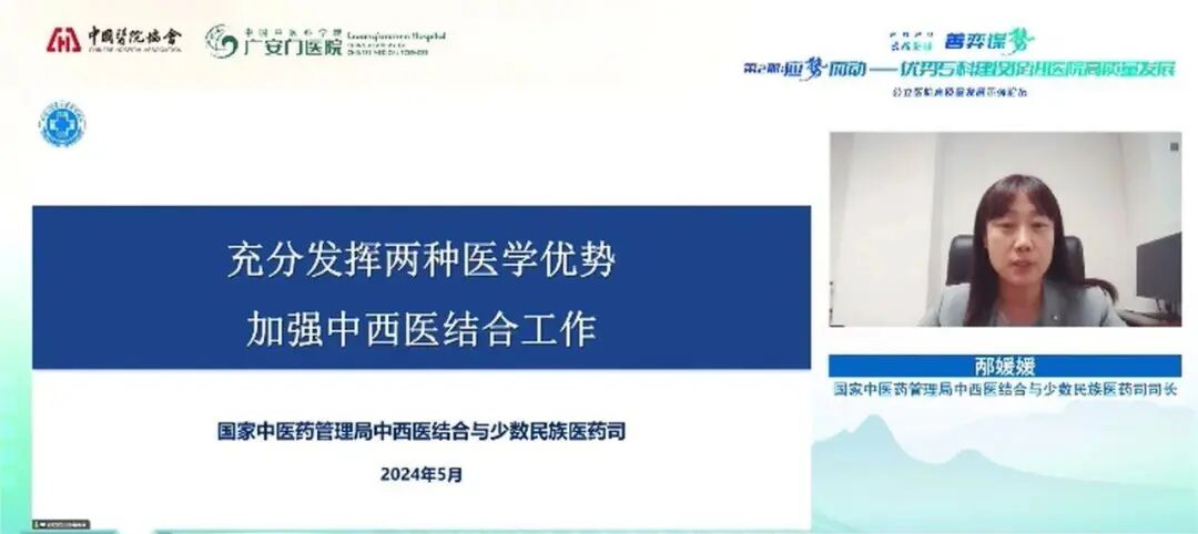 5月30日,由中国医院协会中医医院分会和中国中医科学院广安门医院举办的“善弈谋势 云端荟话”——公立医院高质量发展系列论坛第二期:“应势而动-- 优势专科建设促进医院高质量发展”在线开讲。论坛邀请了国家中医药管理局中西医结合与少数民族医药司邴媛媛司长,部分中医医院、综合医院、中西医结合医院的领导做主题报告,围绕促进中医药传承创新,加强中医优势专科建设分享成功经验,针对优势专科建设开展高层次对话,群策群力绘就医院高质量发展新画卷。